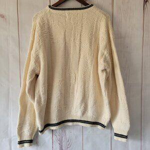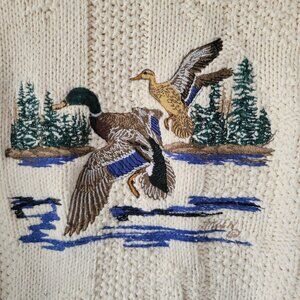 Vintage 90’s Shenandoah Men XL 100% Cotton Textured Knit Crewneck Sweater Embroidered Duck Hunting Design. Cream Like New, EUC