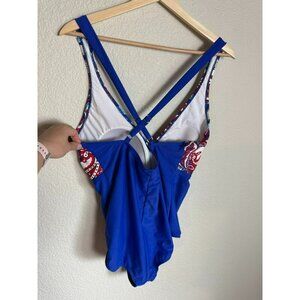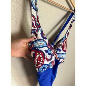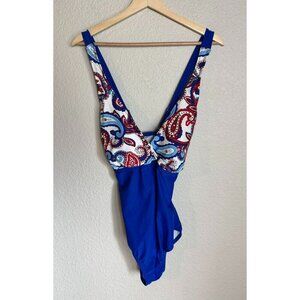 Catalina Red White Blue Paisley Print One-Piece Swimsuit Padded Size 2XL