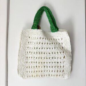 New Free People De Siena Tennis Club Raffia Tote Bag White Green