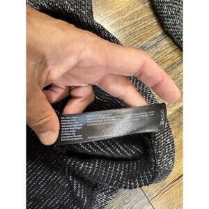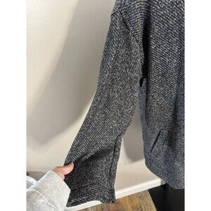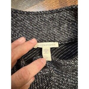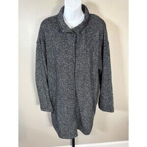 Eileen Fisher Organic Cotton Woven Stand Collar Long Jacket Coat Black White L