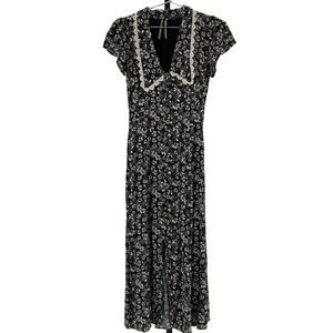 Anthropologie 'Collared' Black Floral Maxi Dress Size 0