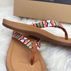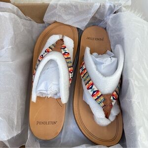 Pendleton Fire Legend Leather And Fabric Southwest Print Thong Sandals 8 NWB!