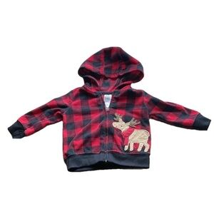 Child of Mine Plaid Red and Black Kids Hoodie with Moose Design Size 3-6 Months