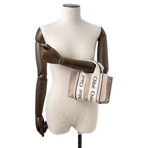 Chloe Woody Canvas Leather Tote Bag Handbag Shoulder