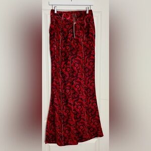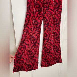 Crafted in a stunning red and black floral print, these wide-leg pants add flair to any ensemble. The plush velvet fabric drapes beautifully, while the zipper at the front, hook and bar closure, and functional pockets make them comfortable yet figure-flattering.