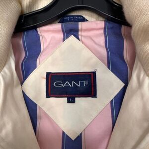 Vintage GANT Men's Size Large White Cotton Full Zip High Neck Bomber Jacket