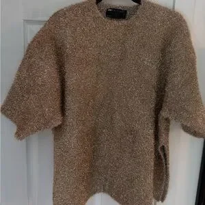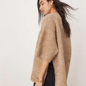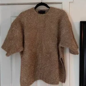 Perfect for the holidays and beyond. Brand new/never worn metallic oversized top in gold tinsel. Color is true to the first 3 photos.