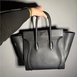Celine Mini Luggage Drummed Leather Black Tote