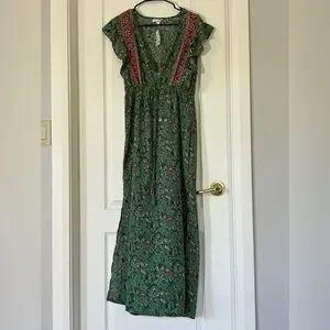 Boemo Green Boho Floral Maxi Dress NWT Size M Ruffle Sleeve