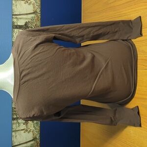 Set of 5 scoop neck, long sleeve, stretchy t-shirts; great for layering or on their own. Red, blue, pink, brown, black. No size tags, but by the way they fit my dress form, I'd say M/L. Used (a little). Please see all photos for personal judgement of condition.