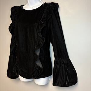 Amaryllis Romantic Regal Goth Ruffle Black Velvet Bell Sleeve Top Womens Sz M