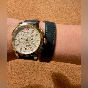 Michele size 18 deep teal double wrap watch band. Deep teal leather exterior with tan interior. Perfect for any occasion.