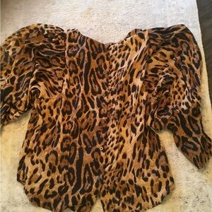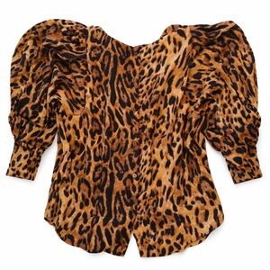 Stylish leopard print blouse with puffed sleeves. Buttons all the way down the back. Perfect for a bold, fashionable look.