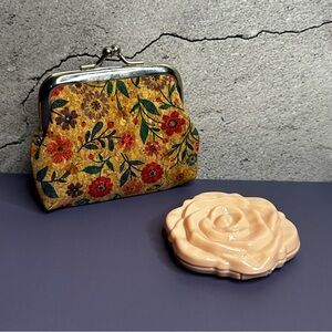 Vintage Inspired Coin Purse and Rose Design Compact Mirror