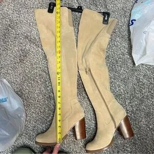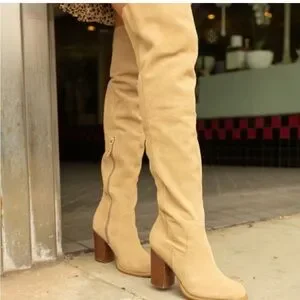 Step out in style with these chic tan over-the-knee boots. Perfect for any occasion, they add a touch of elegance to your look. NWOB Kelsi Dagger Brooklyn Logan over the knee fawn suede boots, women’s size 8