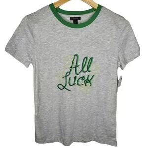 Halogen "All Luck" Embroidered St. Patrick's Day Tee Sz XXS/2X Small in Grey NWT