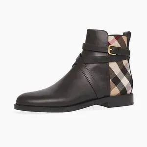 BURBERRY Pryle House Check & Leather Equestrian Ankle Boots 39.5 / 9