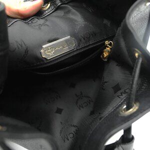 MCM Black Leather Bucket Bag is a timeless staple crafted from durable, pebbled leather and accented with the brand’s iconic gold-tone MCM studs along the base. Designed with a structured yet flexible silhouette, this bucket bag offers both practicality and refined style.