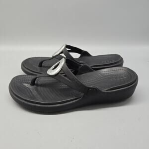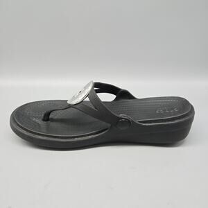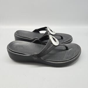 Crocs Sanrah Hammered Circle Slide Sandal Women's Size 6 Black/Silver