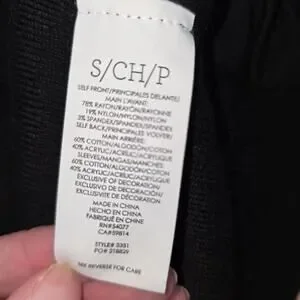 The Cabi Women's Size Small Tailor Front Zip Sweater Black Jacket is a versatile and stylish addition to any wardrobe. Made from a comfortable rayon-cotton blend, this mid-length jacket features a full zip closure with button accents, making it perfect for a variety of occasions from casual outings to business meetings. With its classic black color and minimalist design, this jacket is a timeless piece that can be worn throughout the winter, fall, and spring seasons. The jacket also includes convenient pockets for added functionality, making it a practical and fashionable choice for women looking for a classic and versatile outerwear option.