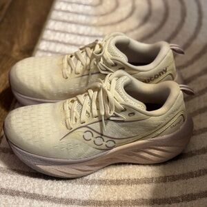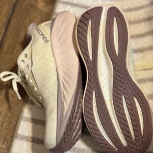 Stylish and comfortable Saucony shoes. Ideal for running and everyday wear. Worn once or twice. Beige, pink and purple. Size 7.