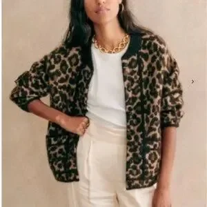 NWOT Sezane Noah Wool-Blend Cardigan in Leopard Animal Print Cardigan SZ S