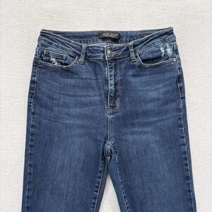 Judy Blue Jeans Womens 9/29 Blue Slim Bootcut Distressed Raw Hem Stretch Denim