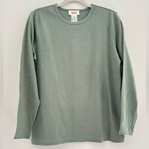 Vintage Talbots Size Medium Ribbed Tee Long Sleeve Sage Green Layering Everyday‎