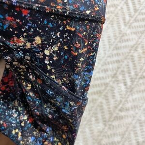 Vibrant leggings with a floral print. Features a mix of colors for a bold look. Women size 6. Pockets on both sides . In good condition. No flaws. 11-24-25