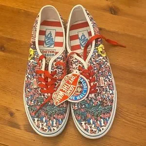 New with tags Colorful Vans sneakers with a playful 'Where's Waldo?' design. Features red laces and white accents.