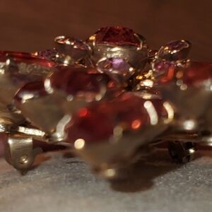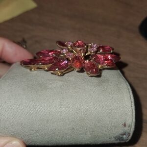 Beautiful light and dark pink round and marquis hue stones in a floral cascade design.