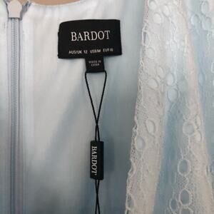 Bardot Blue Mist Bonnie Puff Short Sleeve Lace Dress NEW
