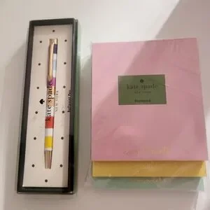 Stylish Kate Spade pen with vibrant stripes. Comes with pastel notepads for notes and reminders.