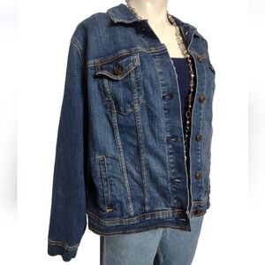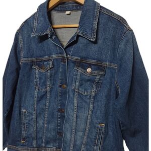 Blue Jean Jacket Size XXL Medium Wash Stretch Denim Trucker Jacket
