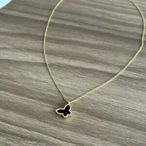 Elegant gold butterfly pendant necklace, perfect for any occasion. Add a touch of sophistication to your outfit.