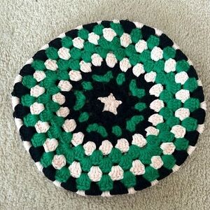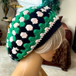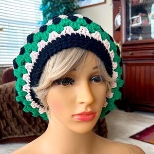 NWOT Free People Lolita Crochet Knit Beret Slouchy Boho Green Black Off-White