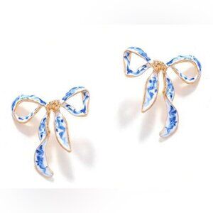 These elegant bow twist earrings feature a stunning combination of blue and gold, perfect for adding a touch of sophistication to any outfit. Ideal for both casual and formal occasions.