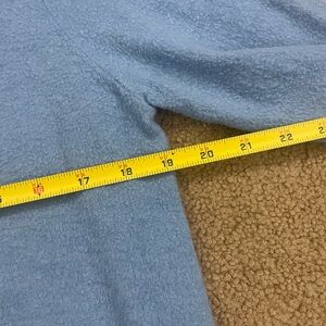 Light blue sweatshirt with 'The HI Life' print. Comfortable and stylish.