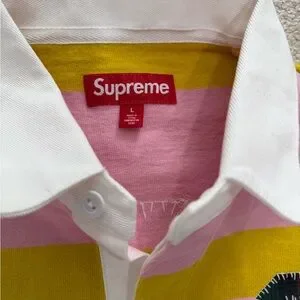 Supreme Pink and Yellow Rugby Shirt with White Collar