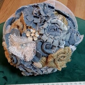 Denim Burlap Lace Bridal Alternative Wedding Bouquet +Matching Brooches