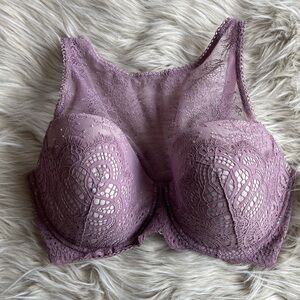Victorias Secret 36DDD Lined Demi Bra Purple Floral Lace High Neck