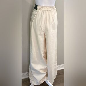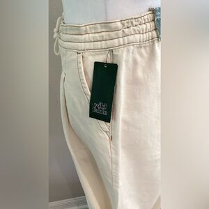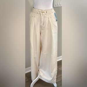 Stylish wide-leg jeans by Wild Fable with relaxed fit, pleated front and drawstring. Cream color. Perfect for comfortable and versatile wear.