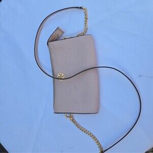 Tory Burch Crossbody Brown Everly Mini Top Zip Gold Details Pink Leather