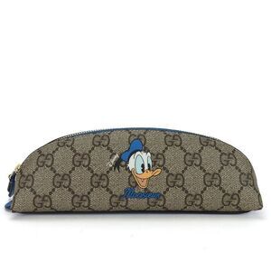 Gucci Pen Case 662129 GG Supreme PVC Beige Blue Gold Hardware Donald Duck