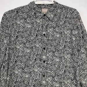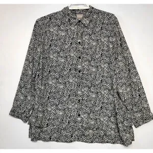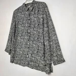 Chicos Shirt Womens XL Black White Animal Print Button Front Long Sleeve Top Mod