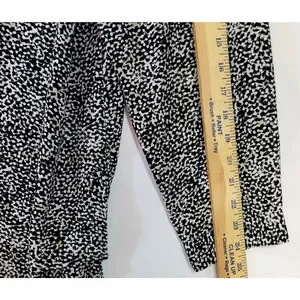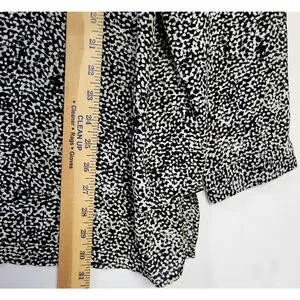 This Chicos shirt for women in size Chicos size 3 approximately Women's size XL features a black and white animal print design, making it a stylish choice for various occasions including travel, weddings, parties, casual outings, formal events, workwear, and business meetings.