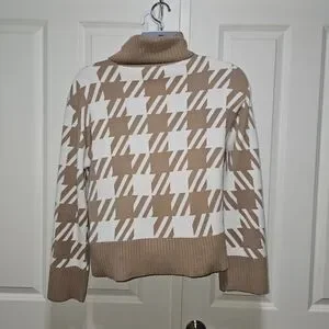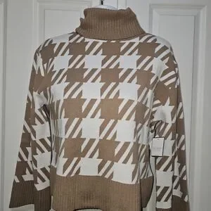 NWT Laundry By Shelli Segal Ivory And Camel Houndstooth Sweater