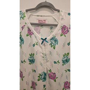 Betsy TW Floral Nightgown With Lace Trim & Polka Dot Hem XL
