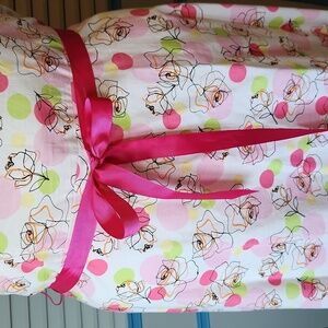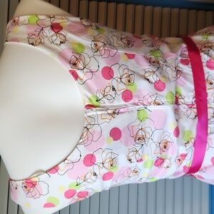 Color: Pink, white, and green floral print with hot pink waist ribbon