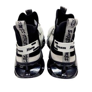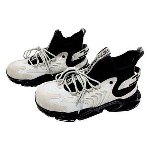 These men's fashion sneakers combine style and comfort, featuring a unique design that stands out. The monochrome color scheme makes them versatile for various outfits.
